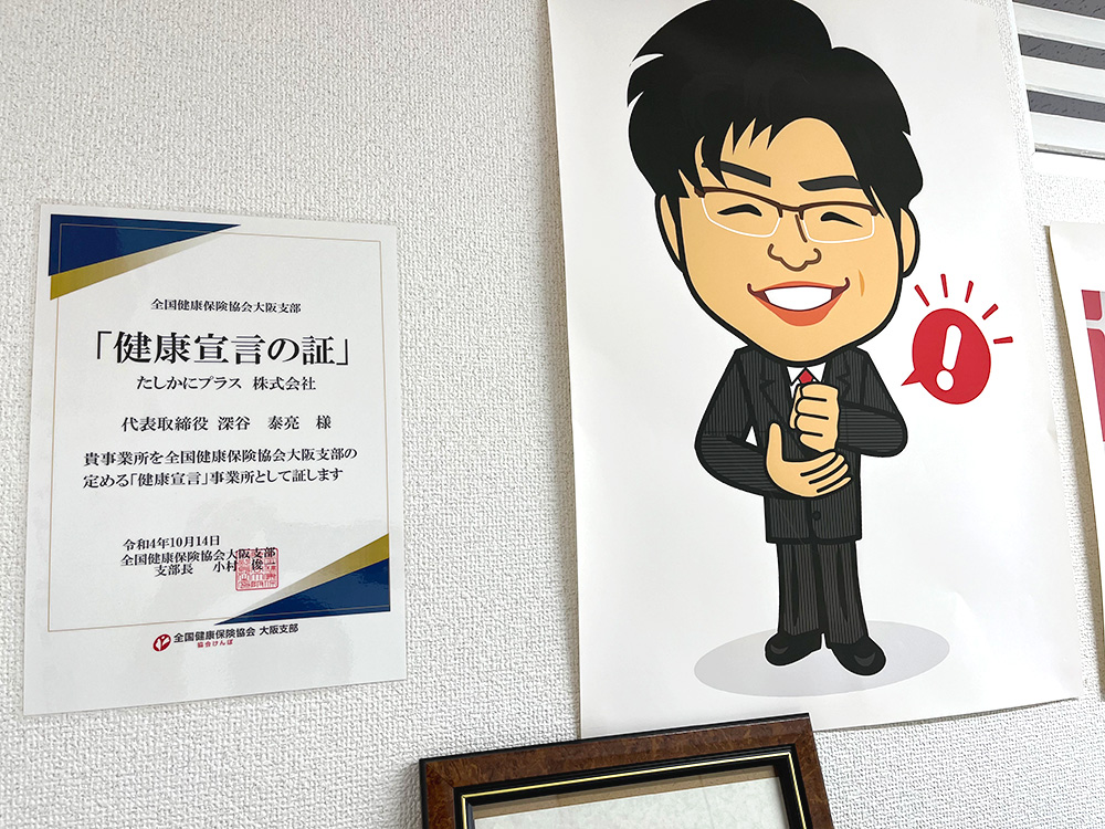 弊社は本年より、健康経営の推進に取り組んで参ります。つきましては、協会けんぽ大阪支部が実施している健康宣言事業に参加し、これから「健康宣言」事業者として組織体制づくりに努めてまいります。